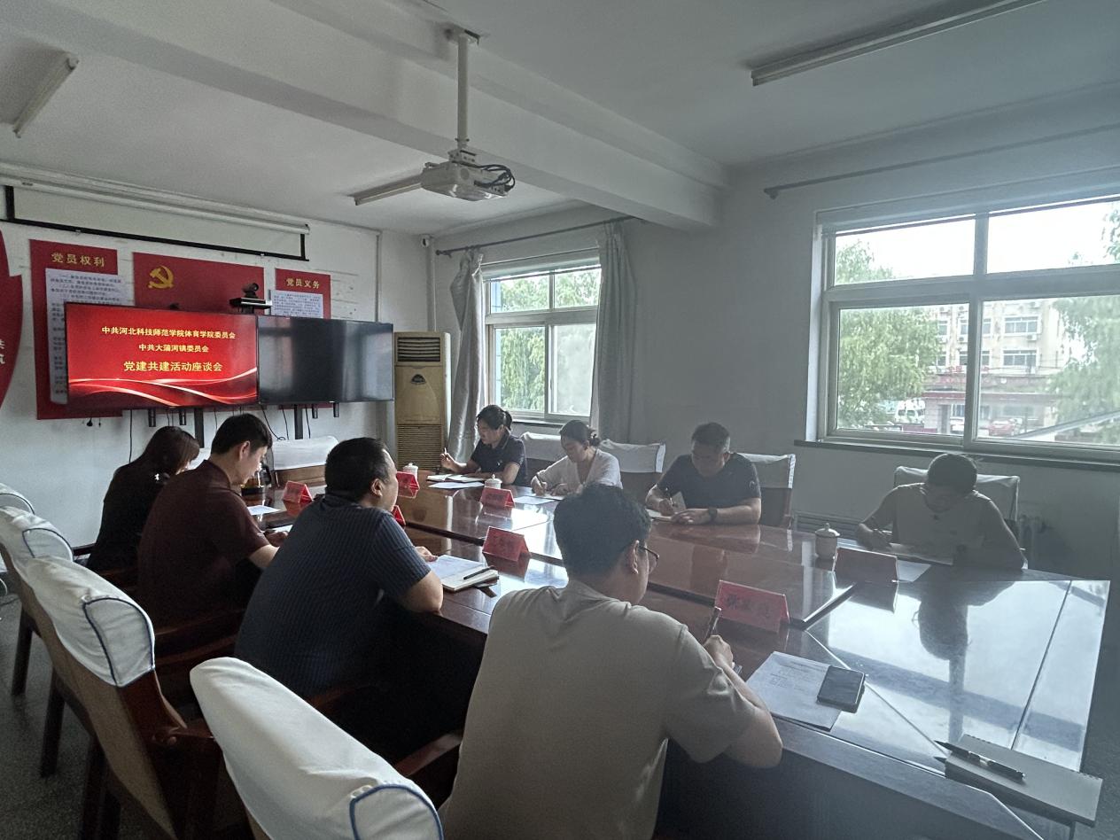 为积极探索校地党建共建新模式,有效整合资源,实现优势互补与共同发展,2025年7月25日,体育健康学院党委与昌黎县大蒲河镇党委开展了党建共建活动座谈会,由体育健康学院一行4人在党委领导班子成员带领下,与大蒲河镇党委书记王生旭、镇长温起及相关班子成员参加座谈。
