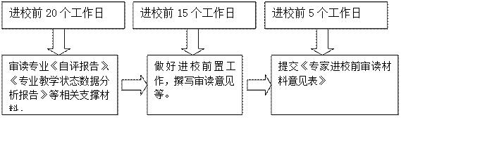 专家组长主持 1.交流专家个人审读意见 2.按一级指标确定考查重点 3.协调专家任务分工和工作计划安排 4.确定现场考查日程安排 |